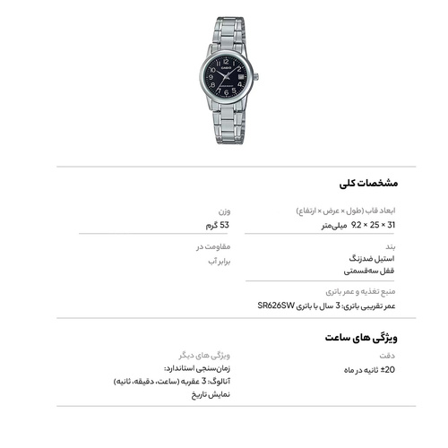 ساعت مچی عقربه ای زنانه کاسیو مدل ltp-v002d-1budf