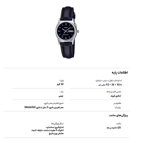 ساعت مچی عقربه ای زنانه کاسیو مدل ltp-v006l-1b2udf