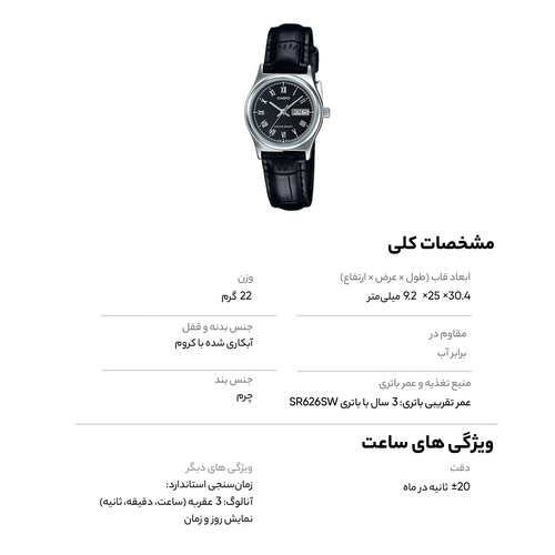 ساعت مچی عقربه ای زنانه کاسیو مدل ltp-v006l-1b