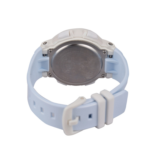 جزئیاتسری Baby-G. نوع عملکرد: عقربه‌ای ( ساعت و دقیقه ) و دیجیتال ( ساعت، دقیقه، ثانیه، روز، ماه، تاریخ و pm). ساعت جهانی ۲۹ منطقه استاندارد زمانی (۲۷ شهر جهان). کرنومتر با دقت ۱ ثانیه و ظرفیت ۵۰ دقیقه و ۵۹ ثانیه. تایمر با دقت ۱ ثانیه با ظرفیت ۶۰ دقیقه و قابیلت تکرار خودکار. صفحه نمایش با قابلیت نورپردازی نئون (Black light LED) و قابلیت تنظیم مدت زمان روشنایی برای ۱.۵ یا ۳ ثانیه. قابلیت تنظیم ۵ آلارم روزانه به همراه ۱ گزینه توقف. سیگنال زمانی ساعتی. تقویم خودکار تا سال ۲۰۳۹. دقت: ۳۰± ثانیه در ماه. وزن: ۳۳ گرم. باتری CR1220 با طول عمر تقریبی ۳ سال.