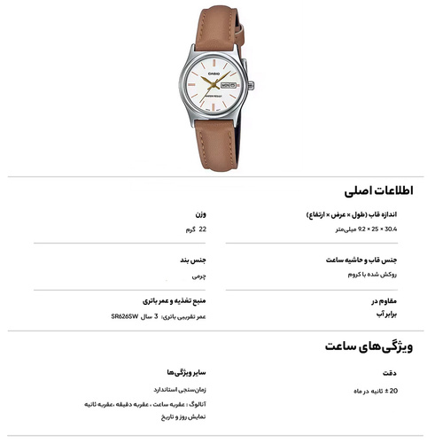 ساعت مچی عقربه ای زنانه کاسیو مدل ltp-v006l-7b2udf