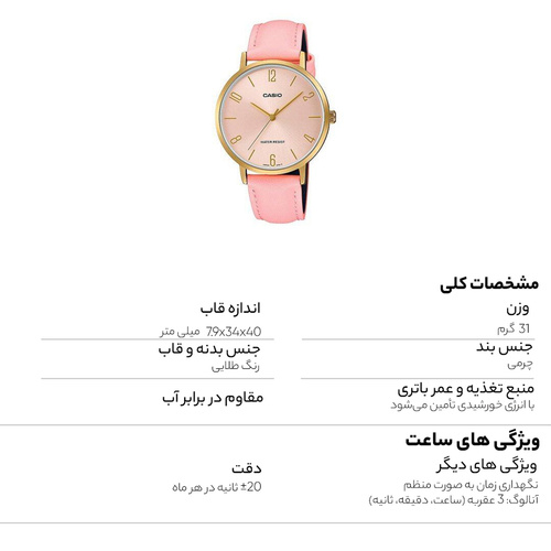 ساعت مچی عقربه ای زنانه کاسیو مدل ltp-vt01gl-4budf
