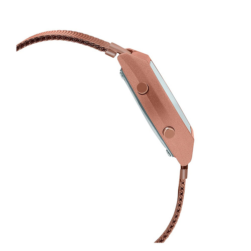نگهداریوزن: 49 گرم اندازه قاب: (طول × عرض × ارتفاع): 38.9 × 35 × 9.9 میلی‌متر بند با روکش یون‌کاری شده طلای رزگلد کرونومتر با دقت 1/100 ثانیه‌ مقاومت در برابر آب تا عمق 50 متر نور LED به رنگ کهربایی و قابلیت Afterglow (تداوم روشنایی) برای دید بهتر صفحه بند از جنس استیل ضد زنگ با پوشش یون‌پلاته مشکی ساخته شده که قابل تنظیم است. تایمر شمارش معکوس با بازه‌ی زمانی تا 24 ساعت و قابلیت تکرار خودکار چندین آلارم چندمنظوره و سیگنال زمانی ساعتی همراه با سیگنال هشدار چشمک‌زن دارای باتری CR2016 با عمر تقریبی 3 سال دقت زمانی ±30 ثانیه در ماه تقویم تمام خودکار تا سال 2039 فرمت 12/24 ساعته زمان‌سنجی عادی: ساعت، دقیقه، ثانیه، 12 ساعته (بعدازظهر)، ماه، تاریخ، روز