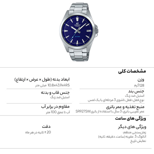 ساعت مچی عقربهای کوارتز مردانه کاسیو مدل efv-140d-2avudf